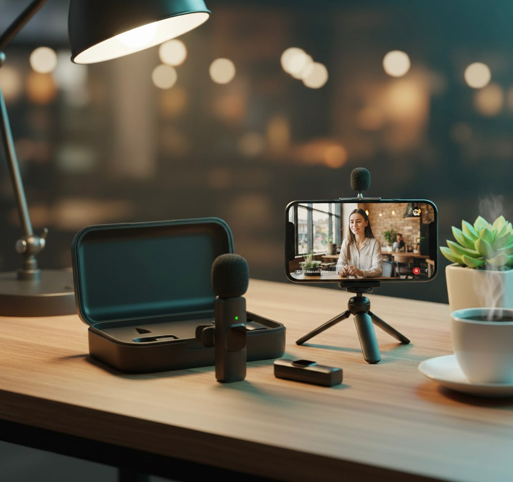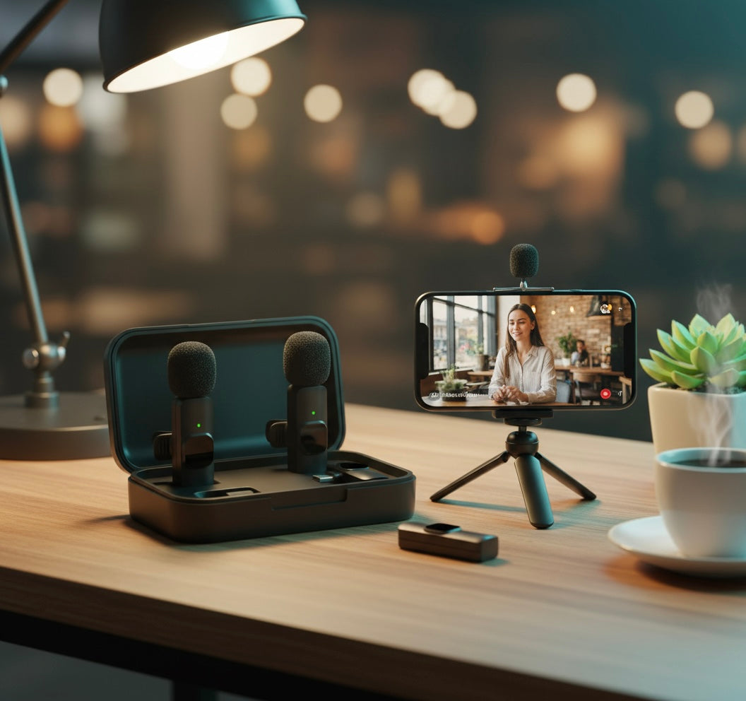 El Micrófono Lavalier Inalámbrico K60 te permite grabar audio y vídeo con calidad profesional desde tu iPhone, Android, iPad o portátil. Es ideal para creadores de contenido, entrevistas, transmisiones en vivo, videollamadas y grabaciones en exteriores gracias a su diseño portátil y su sonido nítido.